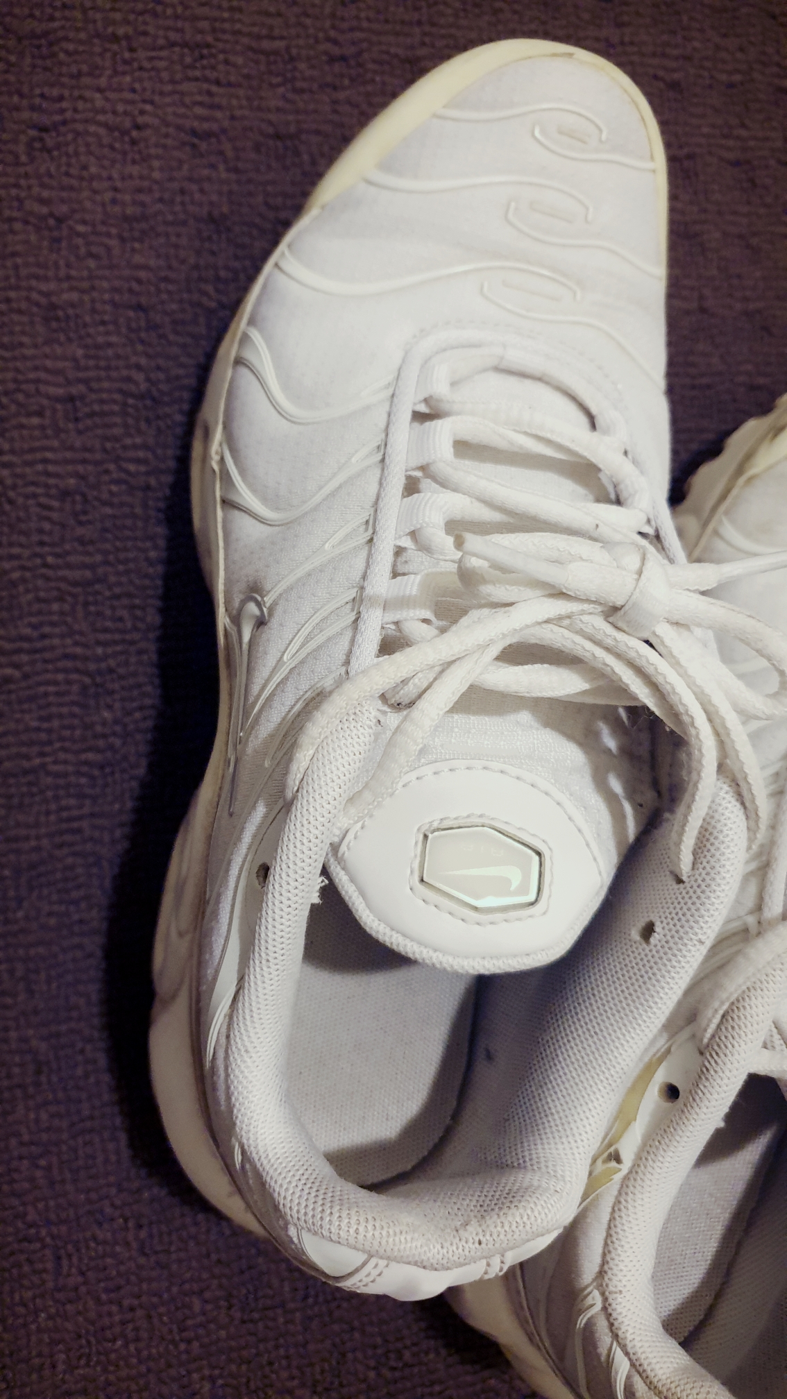 비교를 위해 최근에 구매했던 다른 운동화의 안쪽 뒤꿈치 부분을 눌러보았습니다.